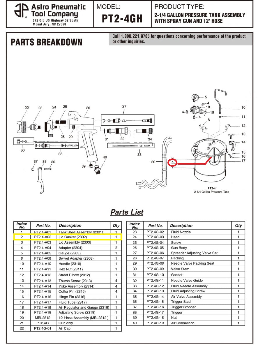 Astro Pneumatic PT2-4-A02 Lid Gasket F/2302 Pressure Tank-Part