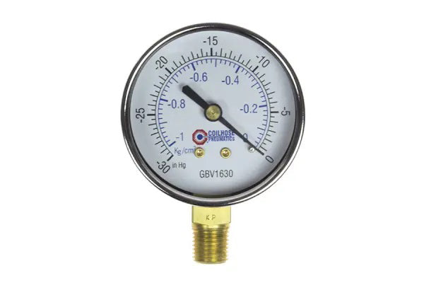 Coilhose Pneumatics GBV1630 2 1/2" Vacuum Gauge, 1/4" Bottom Mount, 0-30 psi