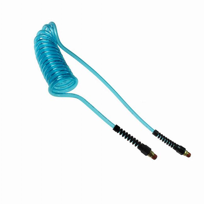 Coilhose PU14-20B-T Flexcoil, 1/4" x 20', 1/4" NPT Swivel Strain Relief Fittings, Transparent Blue