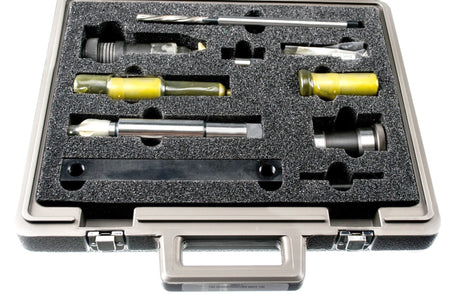The Kent-Moore J-33880 is a specialty tool kit designed for the removal and installation of brass injector sleeve cups in Detroit Diesel engines. Trusted for its reliability and precision, this tool ensures the proper servicing of injector sleeves without damaging surrounding components.