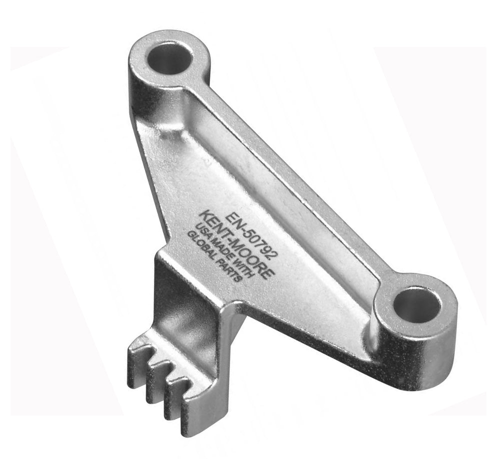 Holds the flywheel in place for servicing the balancer or flywheel bolts. Mounts in place of the starter and engages the flywheel ring gear teeth. Similar to EN-50792.