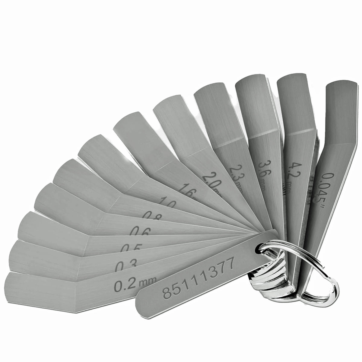 Volvo and Mack 88880053 tool set contains 0.2mm, 0.3mm, 0.5mm, 0.6mm, 0.8mm, 1.0mm, 0.045" 1.6mm, 2.0mm, 2.3mm, 2.5mm, 3.5mm, 3.6mm, 4.2mm feeler gauges.